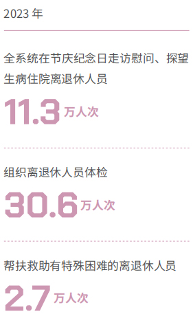 中國石化認真做好離退休干部的服務管理工作,為離退休干部提供精準化、個性化、親情化服務。以敬老月活動為契機,在全系統營造尊老敬老的濃厚氛圍。開展走訪慰問、健康體檢、幫扶救助等工作,積極配合街道社區黨組織開展黨建共建、活動聯辦。