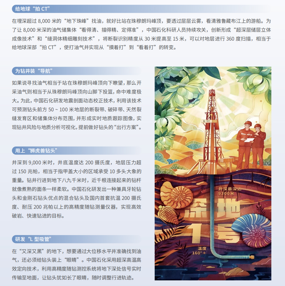 向地球深部挺進需克服超深、高壓、高溫、高含硫等困難,勘探開發(fā)難度極大。在挺進“地下珠峰”、開掘油氣寶藏過程中,中國石化“深地工程”科研團隊持續(xù)發(fā)力深地油氣研究和勘探開發(fā),創(chuàng)新發(fā)展深層海相地質(zhì)理論和勘探技術,逐步掌握了超深層油氣優(yōu)快鉆井技術,形成一批關鍵核心技術裝備,實現(xiàn)了特深井由“打不成”到“打得快、打得準”的重大跨越。