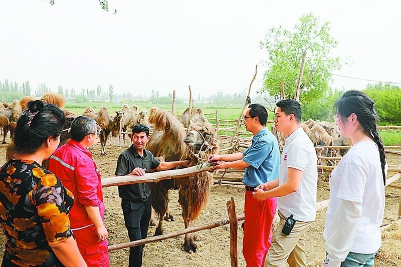 圖2:今年以來,西北油田派出4個工作隊到新疆柯坪縣四個村莊駐村,聚焦產(chǎn)業(yè)、教育、消費三個領(lǐng)域助力鄉(xiāng)村振興。圖為5月22日駐村工作隊到新疆柯坪縣蓋孜力克鎮(zhèn)托萬巴格勒格村的駱駝養(yǎng)殖戶阿力木·庫完家,了解家庭養(yǎng)殖產(chǎn)業(yè)發(fā)展情況。 田 昆 攝 王福全 文