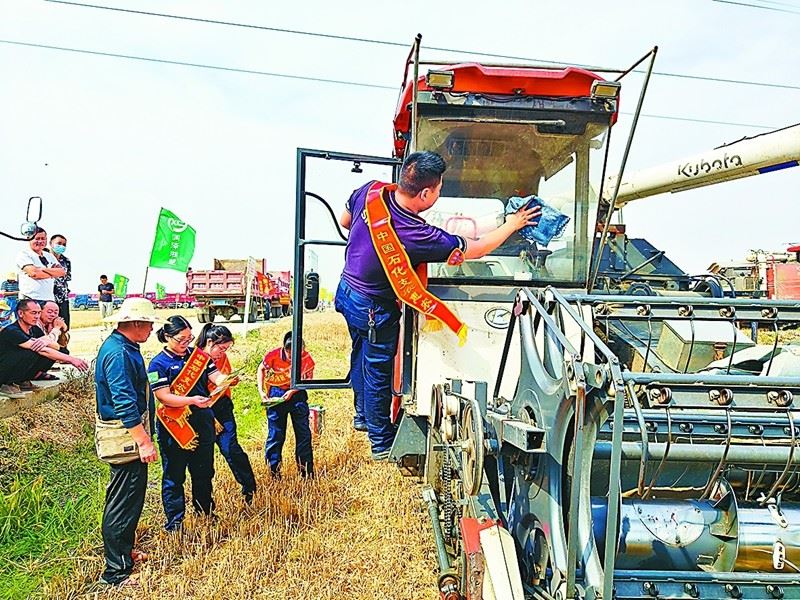 圖3:“三夏”以來,湖北石油在全省系統(tǒng)組建送油小分隊,免費送油到田間地頭,為小麥搶收贏得時間,得到廣泛好評。圖為5月20日襄陽石油員工為當?shù)剞r(nóng)戶送油。 潘 磊 攝 熊 海 文