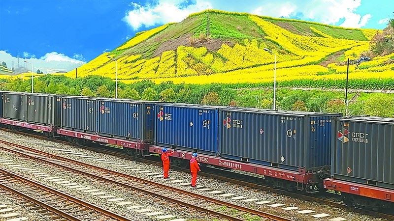 硫黃是生產農業化肥的重要原料。春耕開啟之際,中原油田普光氣田加強與煉銷公司等合作,發揮專列運量大、運輸快、效率高優勢,加快硫黃出廠速度,截至目前,今年已通過專列運輸硫黃18.6萬噸,同比增加24.5%。圖為3月11日,工作人員對硫黃專列進行發車前安全檢查。汪作慶 攝