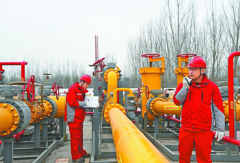 天然氣分公司各輸氣場站扎實(shí)做好天然氣管道冬防保溫、設(shè)備檢維修等專項(xiàng)排查整治,通過數(shù)據(jù)遠(yuǎn)傳系統(tǒng)實(shí)時監(jiān)控運(yùn)行情況,保障天然氣外輸暢通。冬季保供以來,已向華北地區(qū)供應(yīng)天然氣26億立方米。圖為12月25日該公司山東實(shí)華興福輸氣站檢維修人員對設(shè)備進(jìn)行檢查維護(hù)。卞蔚聰 攝 李 臻 文