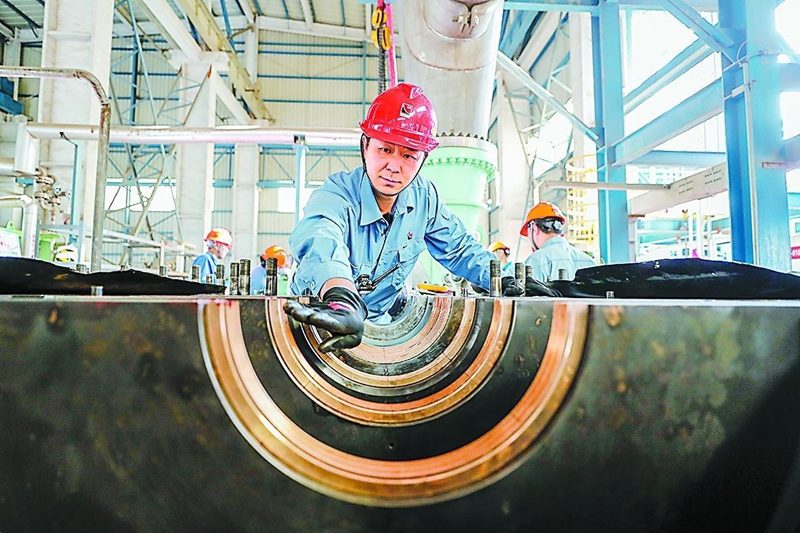 年底,中韓石化4年一次的大檢修進(jìn)入收官階段,煉油廠區(qū)裝置已相繼投產(chǎn),化工廠區(qū)裝置將陸續(xù)進(jìn)入投產(chǎn)階段,目前正進(jìn)行檢查調(diào)試工作。圖為近日維修人員在環(huán)氧芳烴部現(xiàn)場檢查循環(huán)氣壓縮機(jī)拆解情況。本報記者 付 松 攝