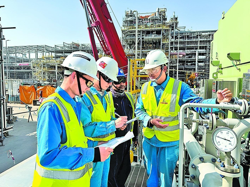 圖為十建公司沙特馬贊項目中外員工利用安全管理APP在施工現(xiàn)場進(jìn)行安全風(fēng)險隱患排查。于浩然 攝