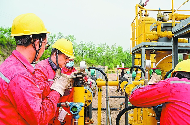 5月9日,華東油氣分公司延川南煤層氣田首口薄煤層側(cè)鉆水平井——延6-4-22側(cè)平1井,經(jīng)1個(gè)多月排采實(shí)現(xiàn)自噴生產(chǎn),日產(chǎn)氣突破2.4萬(wàn)立方米,展現(xiàn)良好產(chǎn)氣潛力。圖為氣田員工調(diào)整該井生產(chǎn)參數(shù)。 沈志軍 攝 楊 松 何瑞清 文