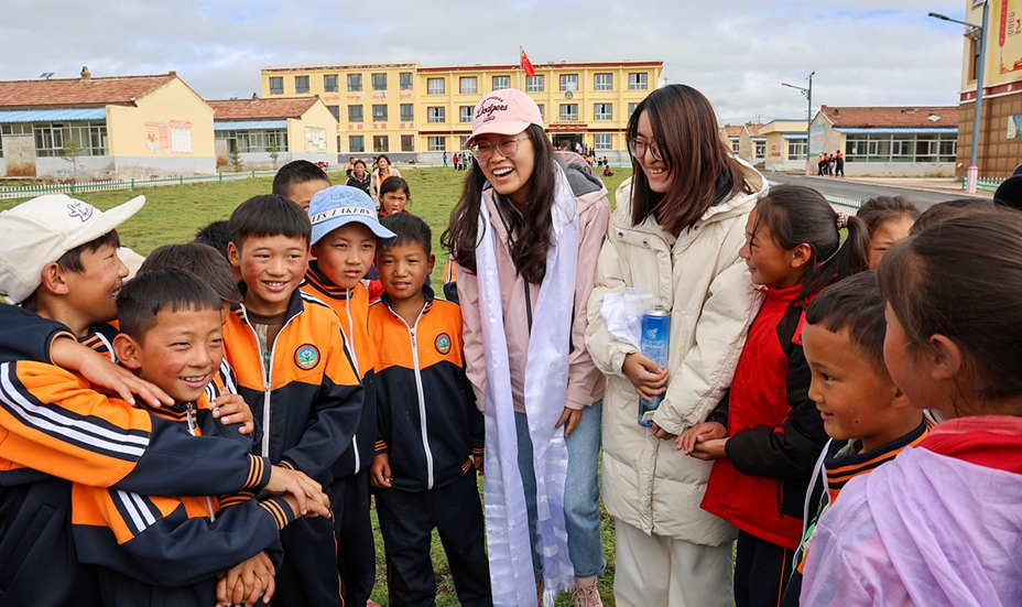 中國石化揚子石化駐校志愿者與青海澤庫縣西卜沙小學學生進行交流