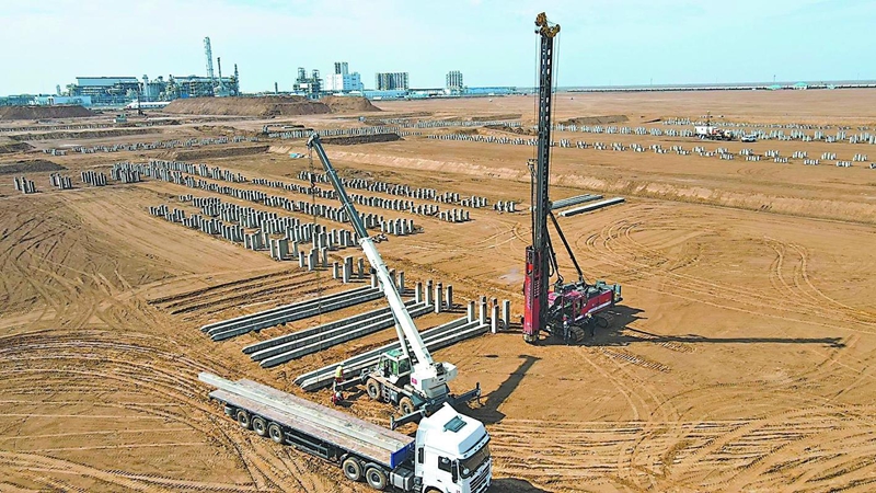 目前,海投公司參股的Silleno(哈薩克斯坦聚乙烯)項目已順利完成簽約、交割、投資決策、政府審批、階段性融資、EPC授標等重要節點,如期進入建設執行階段。該項目位于哈薩克斯坦西部阿特勞州,依托哈薩克斯坦最大油田——田吉茲油田的乙烷原料,建設1套年產能為125萬噸的聚乙烯裝置。該項目滿足了哈薩克斯坦產業布局由油氣資源領域向中下游延伸的發展需要,為該國經濟多元化轉型提供新動能。圖為Silleno項目施工現場。仝 帥 供圖
