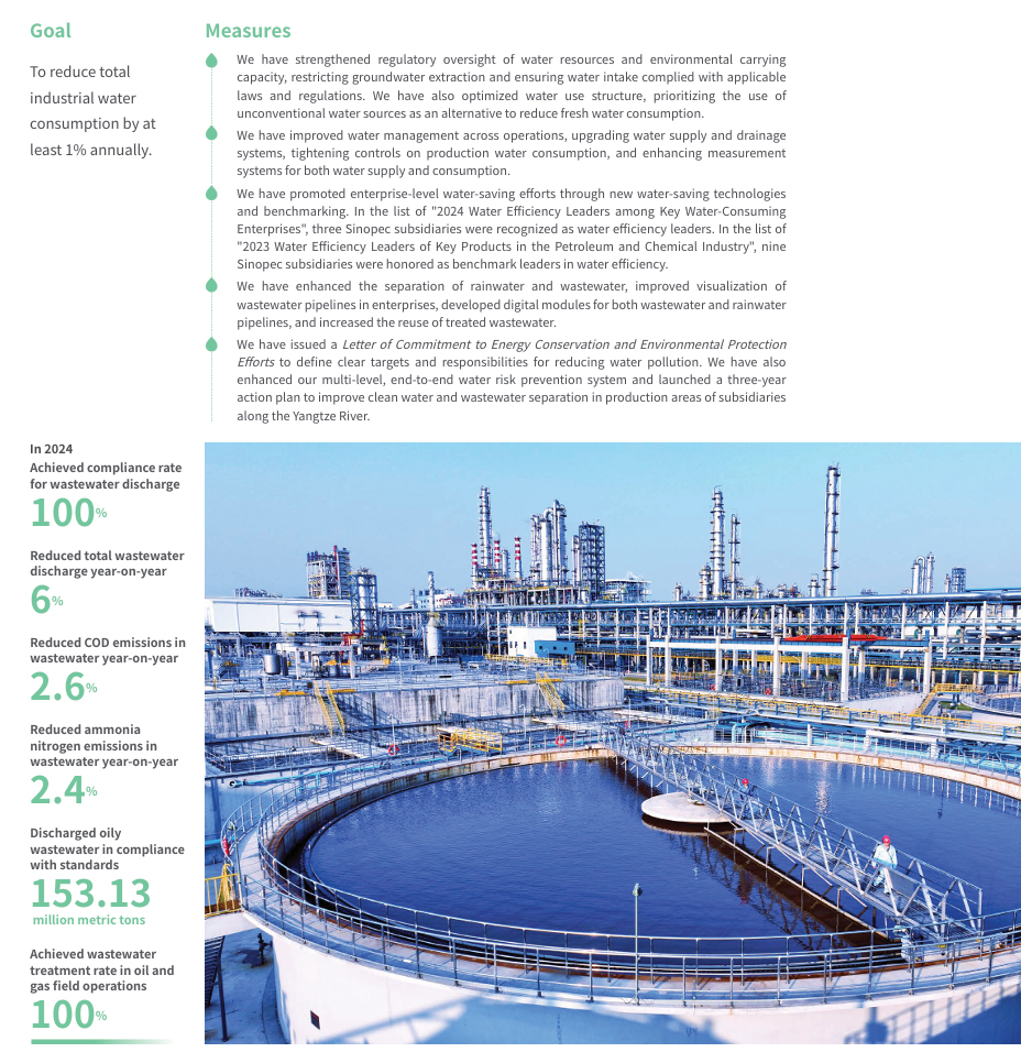 Sinopec remains committed to advancing its Green Enterprise Action Plan, emphasizing the synergistic and integrated reduction of both pollutants and carbon emissions. The Company has steadily adopted cleaner production practices, actively driven energy conservation and emissions reduction, and promoted the circular economy. At the same time, it has accelerated efforts to build a green development model spanning the entire industry, process, and management chains. These efforts have effectively fostered Sinopec's green competitiveness and strengthened its capacity for sustainable, green development.
